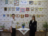 На выставке с защитой своей научно-исследовательской работы «Секреты вышивания крестом» выступили ученицы 6б класса Даша Халманова и Аделя Хасянова.